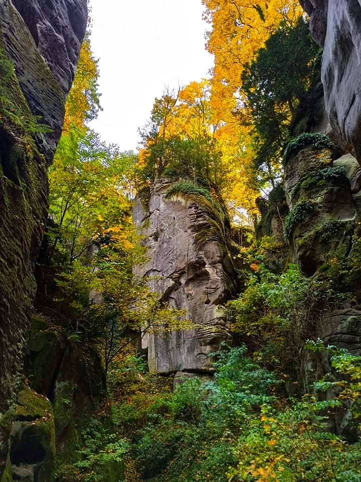 Hruboskalsko is a name of one of the Bohemian Paradise areas – an area with picturesque and best-known sandstone formations. The Hruboskalsko area is characterized by impressive towers reaching up to 55 m and also by steep canyons. It is divided in 3 main areas: the Dračí Skály and Zámecká Rokle, the Kapelník, the Maják and the Údolíčko.