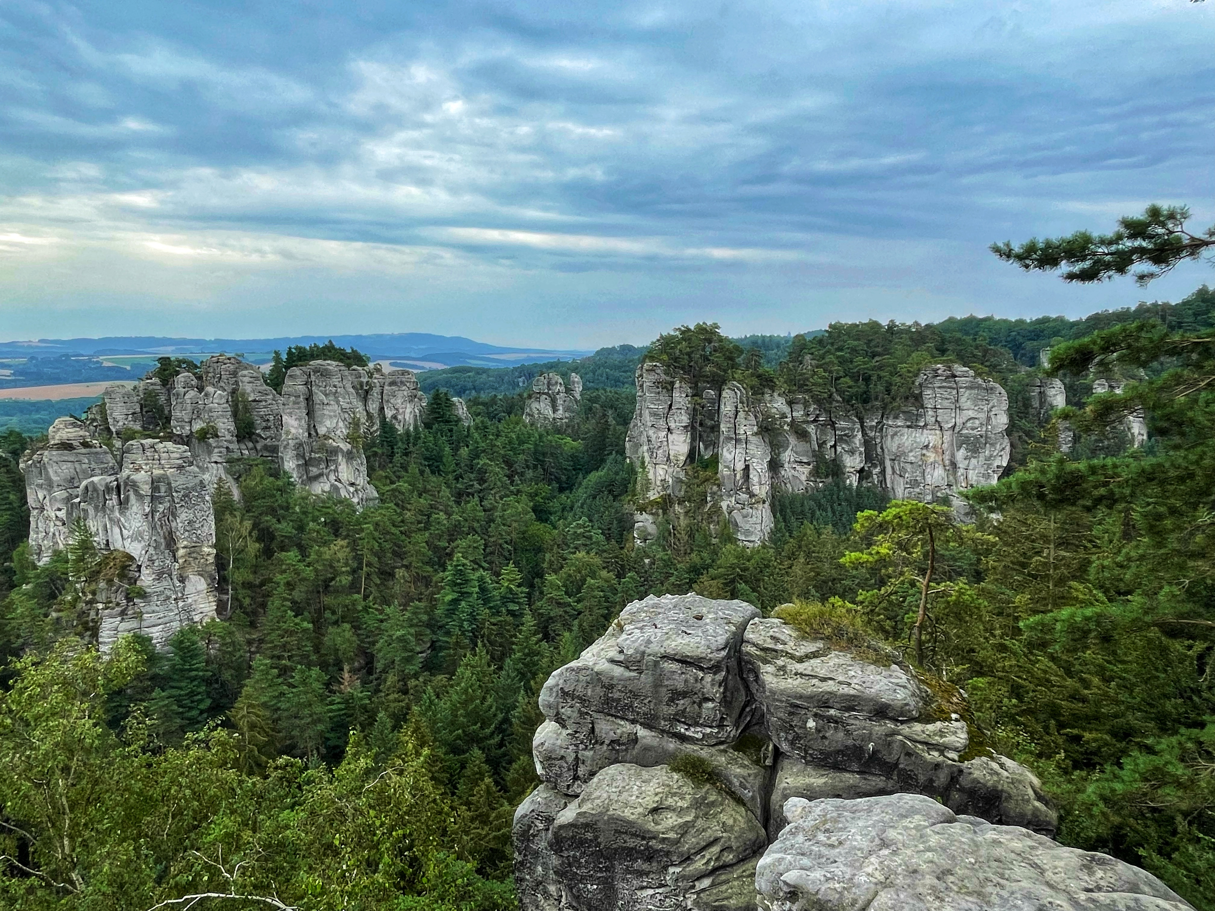 Visiting Hruboskalsko allows you to discover Valdštejn castle, Hrubá Skála castle, symbolic climber cemetery (right under the Mariánská lookout point), many spectacular viewpoints (Mariánská Vyhlídka, Vyhlídka Na Kapelu, Vyhlídka U Lvíčka, Hlavatice Lookout Tower etc.) giving you a stunning panorama of rock city. You will enjoy the remarkable beauty of the landscape and numerous historic landmarks, bizarre rock formations and deep pine forests.