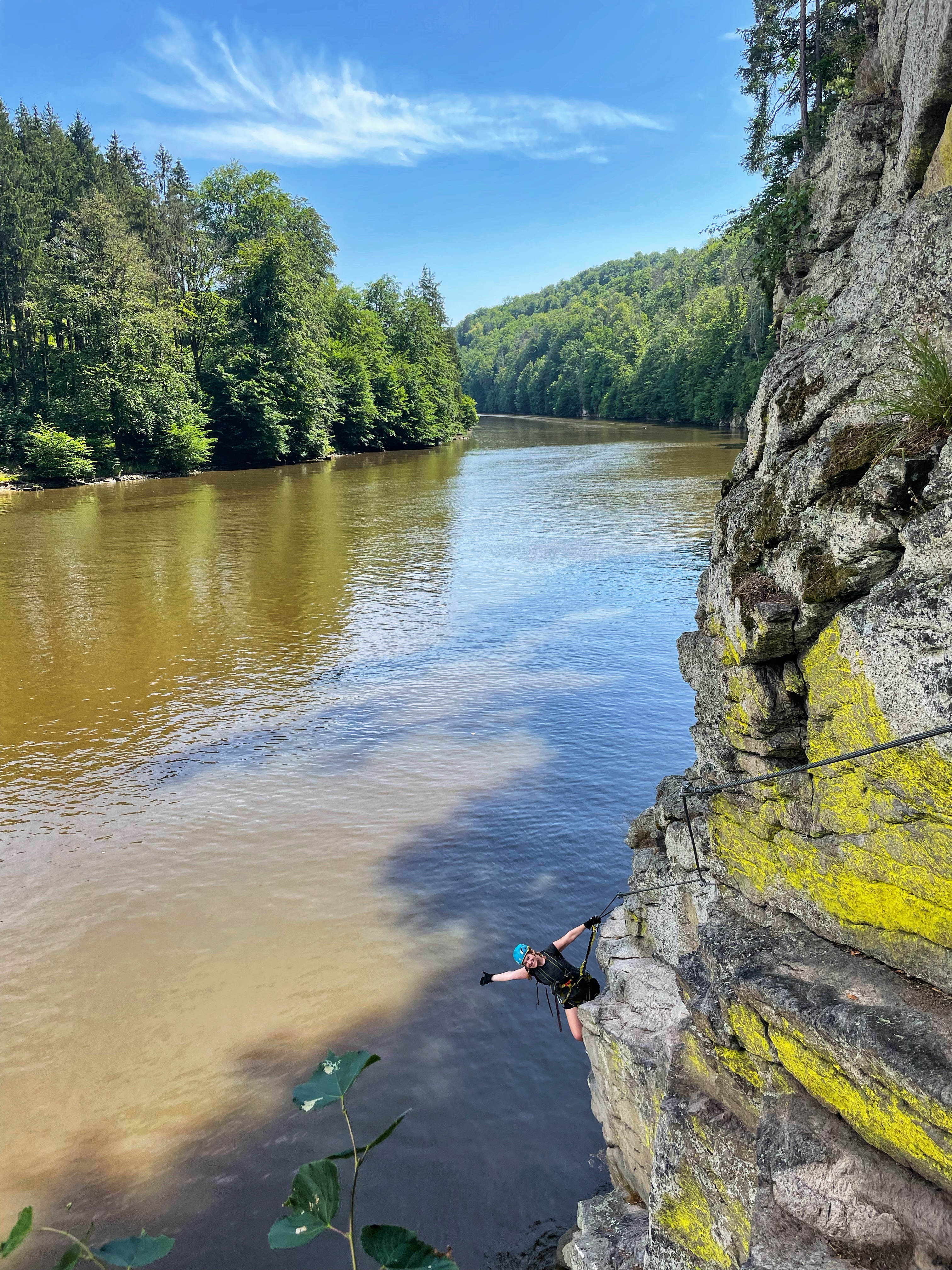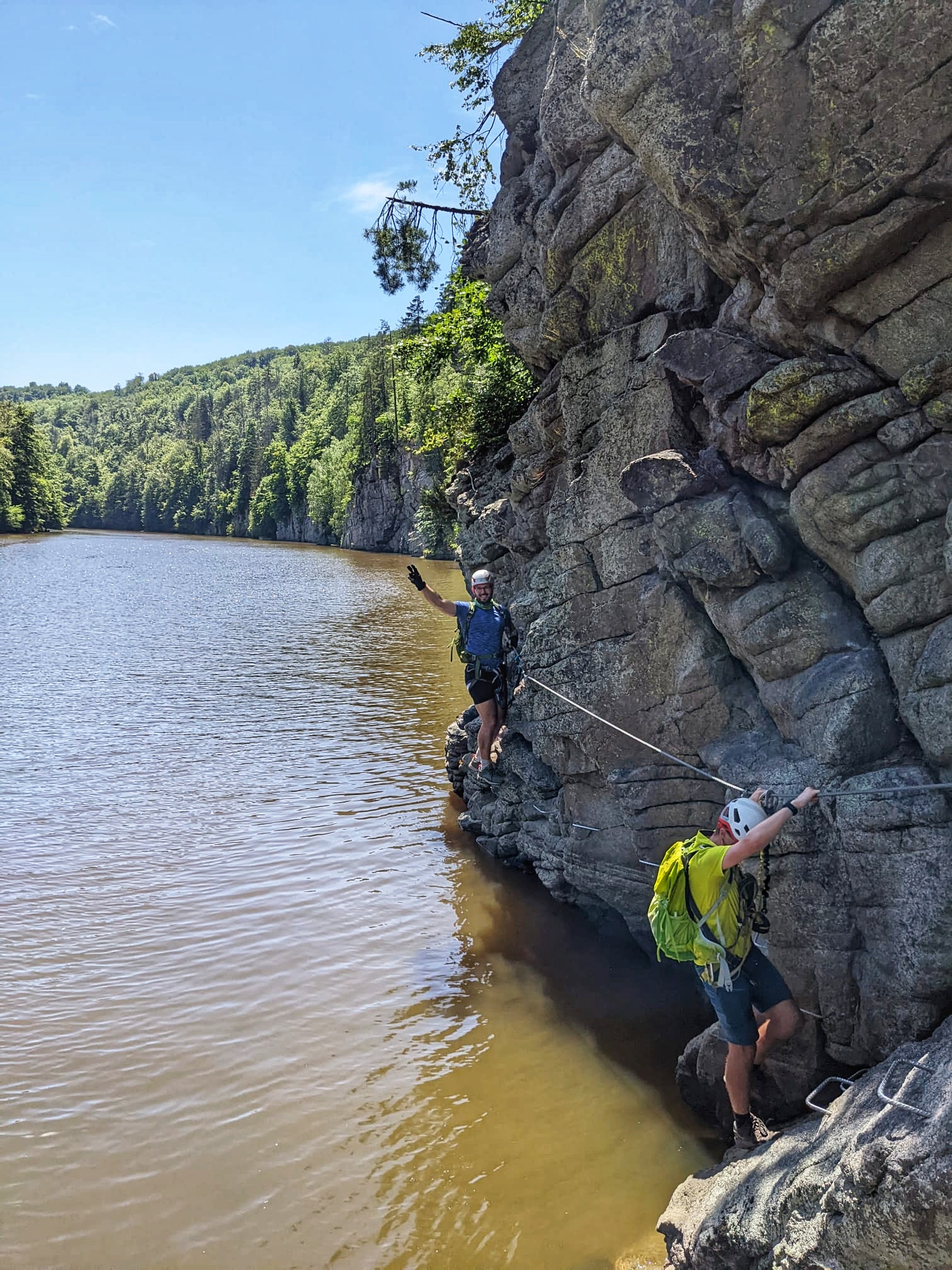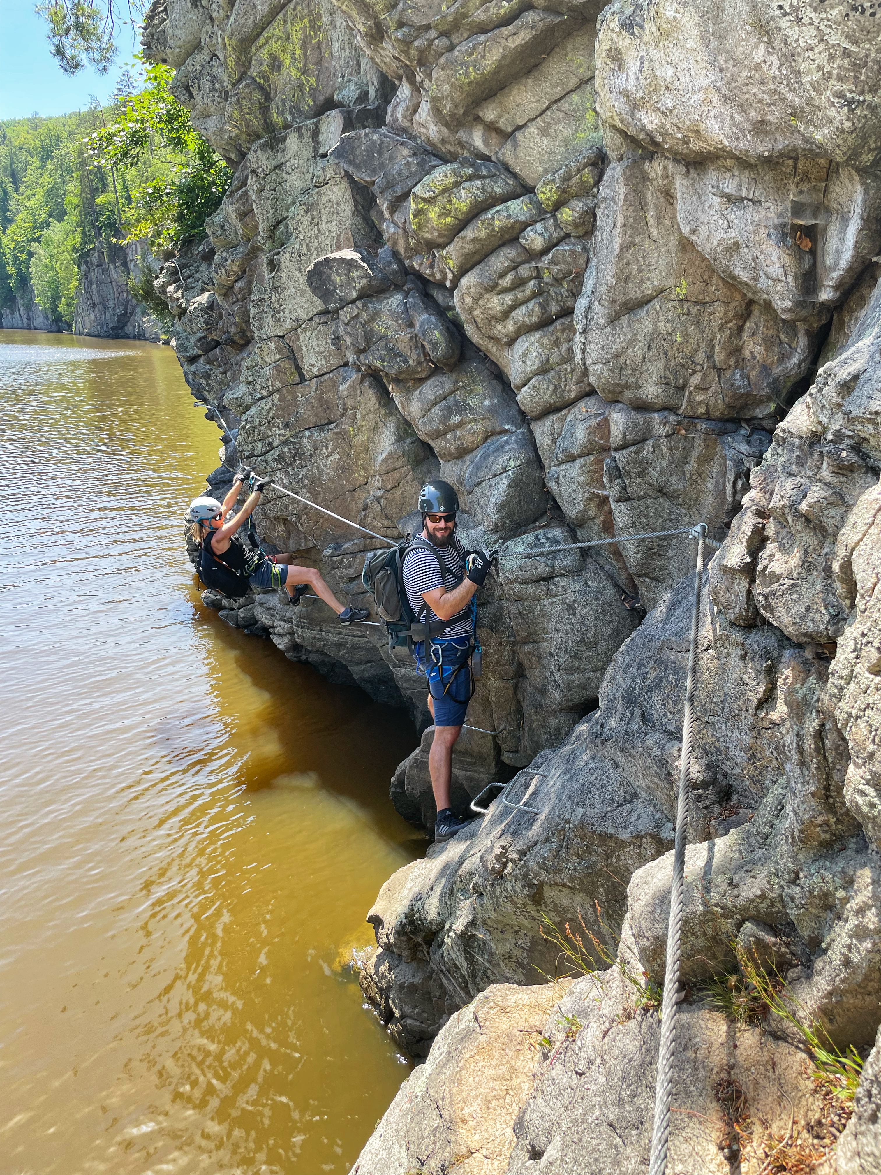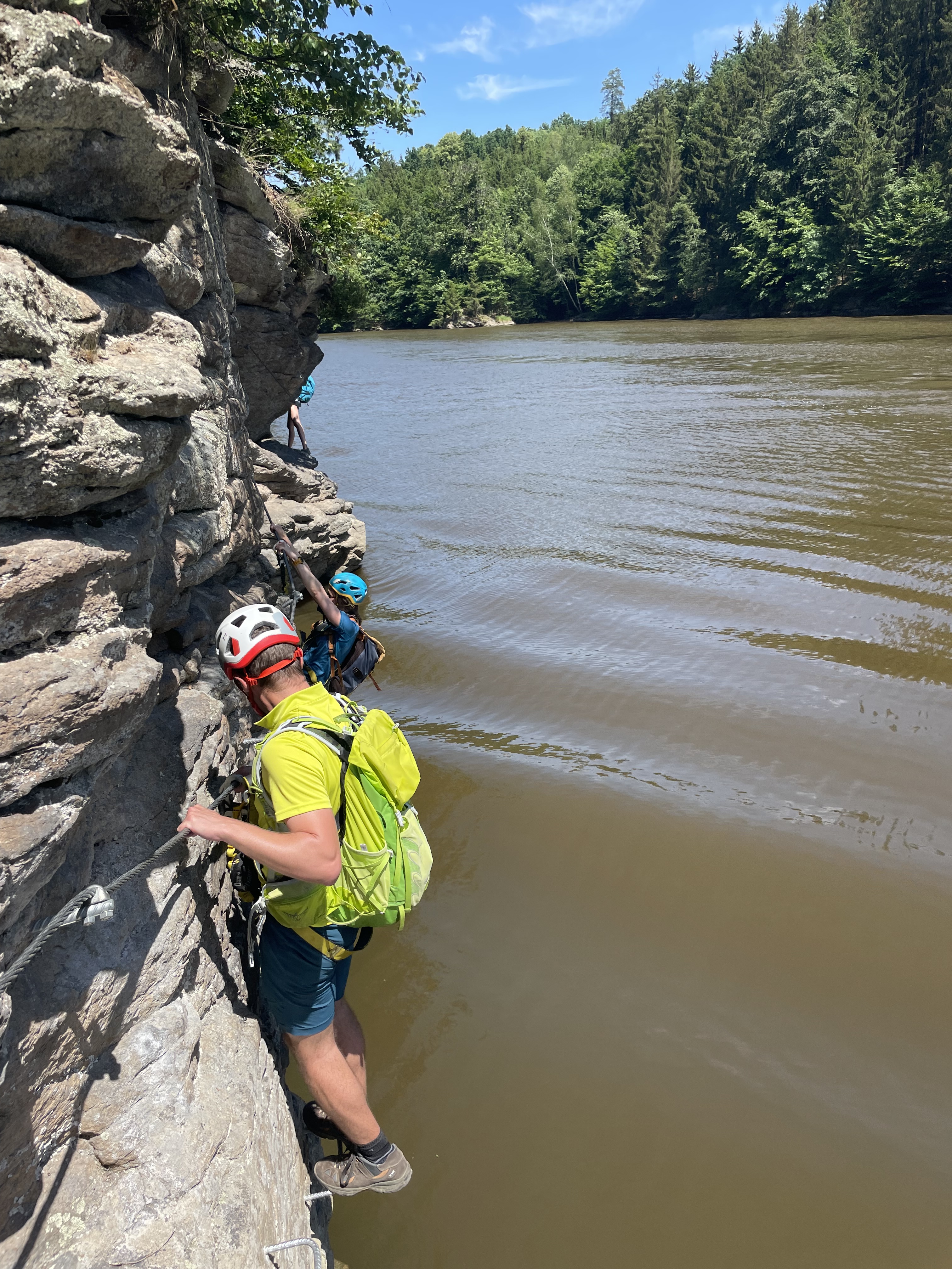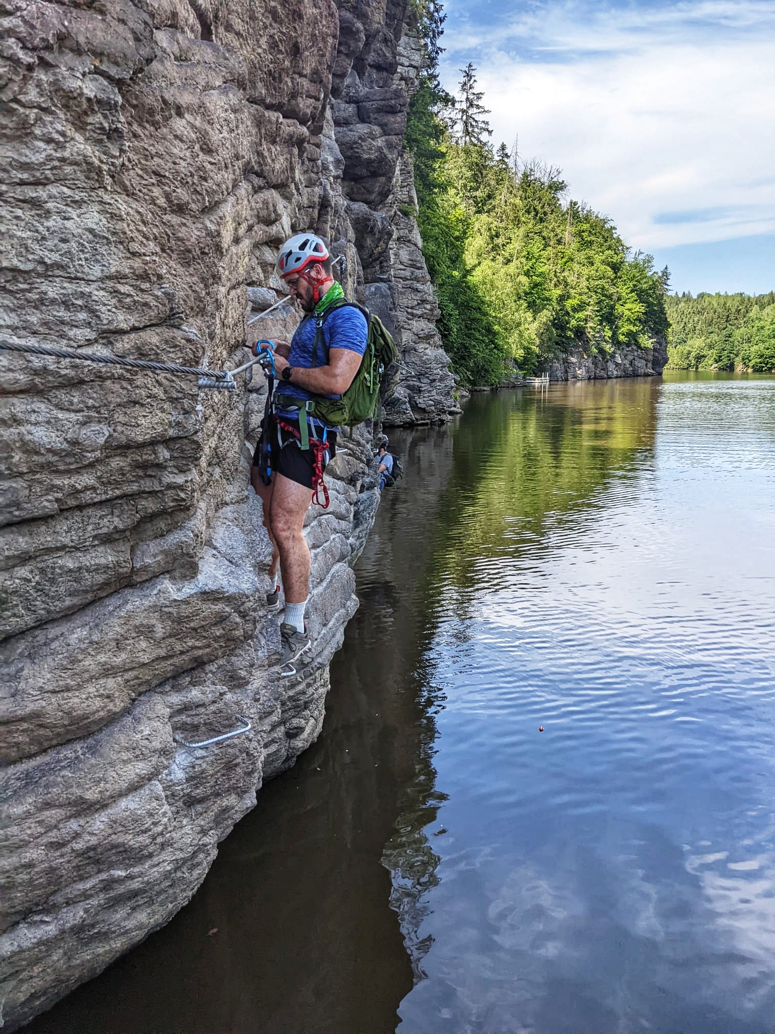 Several via ferratas can be found also in the Czech Republic. One of them, called Ferrata Hluboká, is located in the picturesque Vltava valley near the town of Hluboká nad Vltavou. You can check the exact location of the via ferrata here (via mapy.cz).