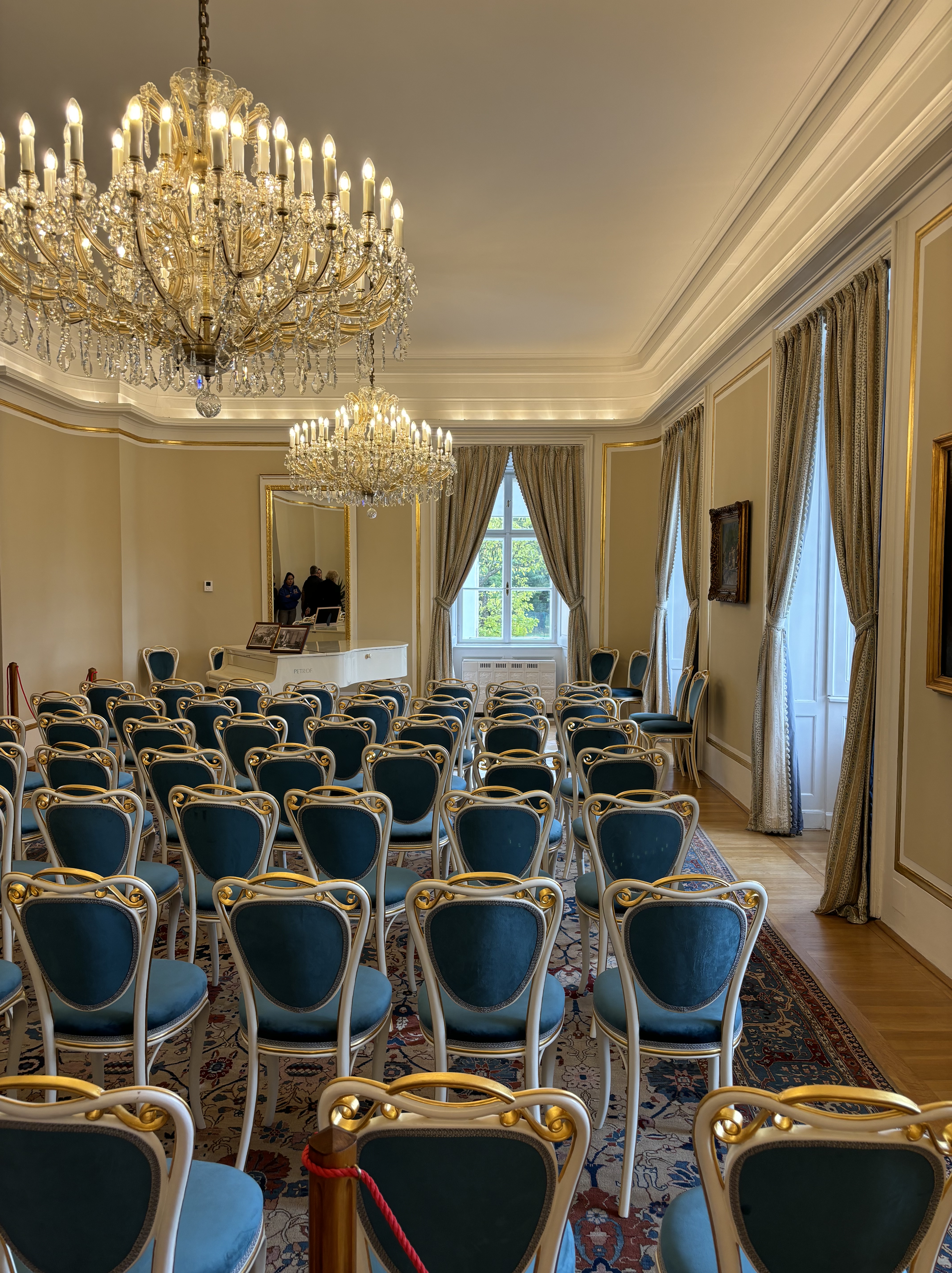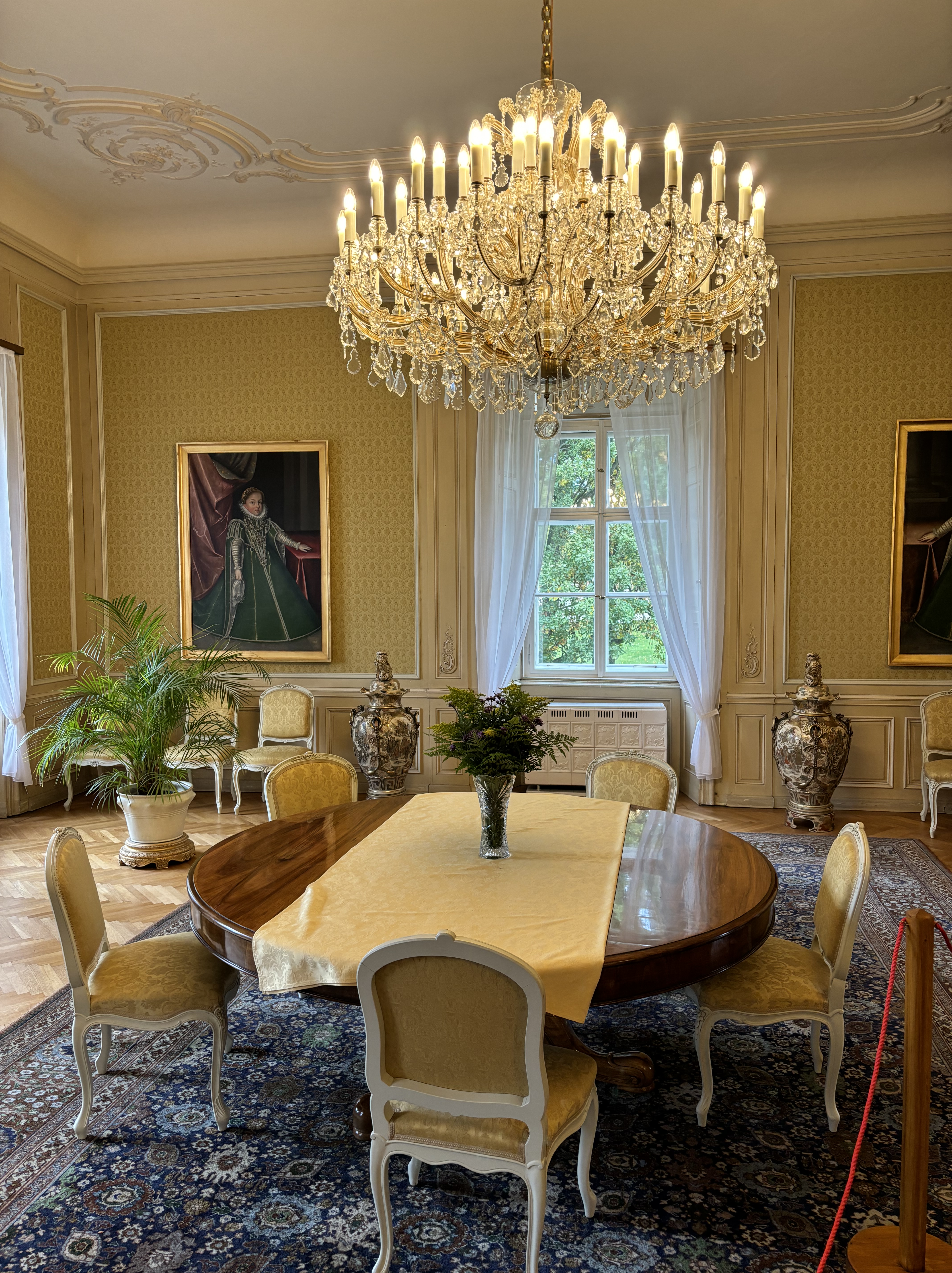 The Wallenstein family purchased the chateau in the late 17th century, and in 1730, Count Jan Josef Wallenstein added another floor to the modest building. From the early 18th century until 1921, the Fürstenberg family owned the estate. In 1921, the Czechoslovak government acquired the chateau to use it as an official residence for the nation’s Head of State. The chateau underwent numerous renovations, with its current appearance largely shaped by the restoration work done in 1902-1903. Architect Josip Plečnik carried out the most recent renovations between 1921 and 1924, refining both the chateau and its surroundings. Today, the chateau sits at the center of the Chateau Park, serving as its focal point and seamlessly blending with the landscape.